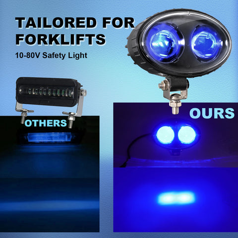 The core design of the AgriEyes 7008 LED forklift light aims to reduce workplace accidents by enhancing visual warnings. This safety light projects a conspicuous blue spot on the ground in front of or behind the forklift, clearly delineating a safe distance for pedestrians to maintain.